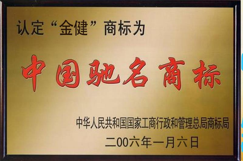 2006年1月6日,“金健”商标被国家工商总局认定为“中国驰名商标”。
