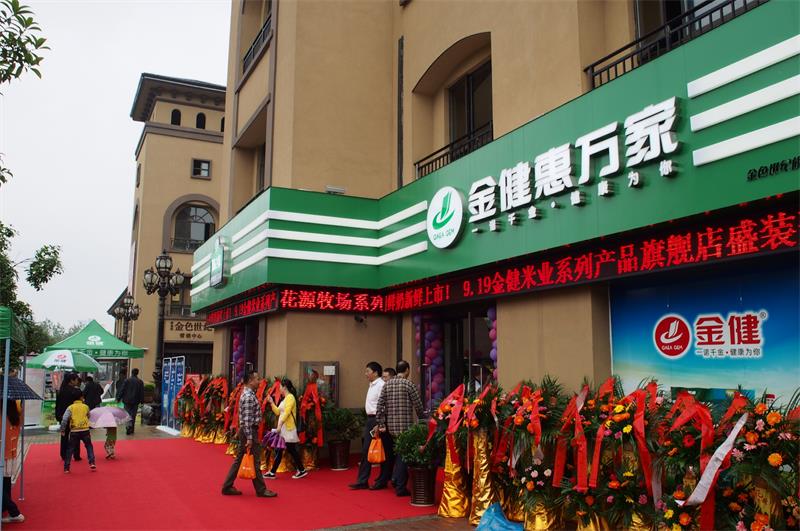 2015.09金健“惠万家”形象店正式挂牌营业。主要经营公司米、面、油、奶、糖果、果冻、速冷食品等公司产品,对发展自有零售终端渠道,打造社区连锁系统新模式进行探索。