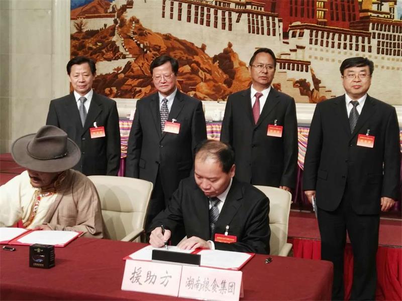2016.09国家粮食局在北京召开全国粮食行业对口援藏工作会议。公司总裁陈伟代表湖南粮食集团、金健米业参加会议并与西藏自治区山南市粮食局签订了对口支援项目协议。