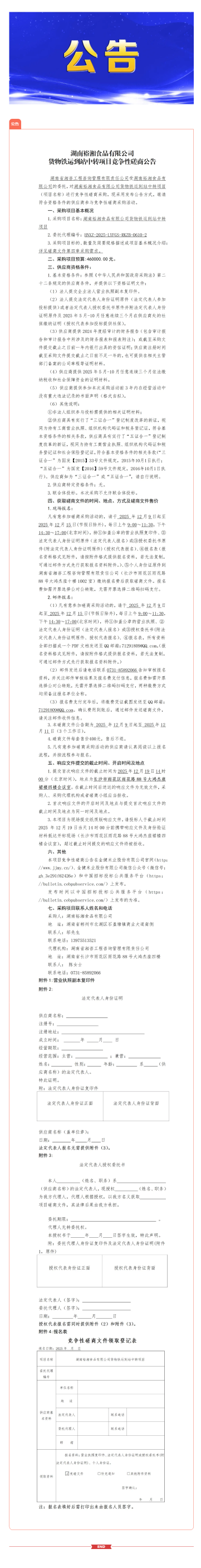 湖南裕湘食品有限公司货物铁运到站中转项目竞争性磋商公告
