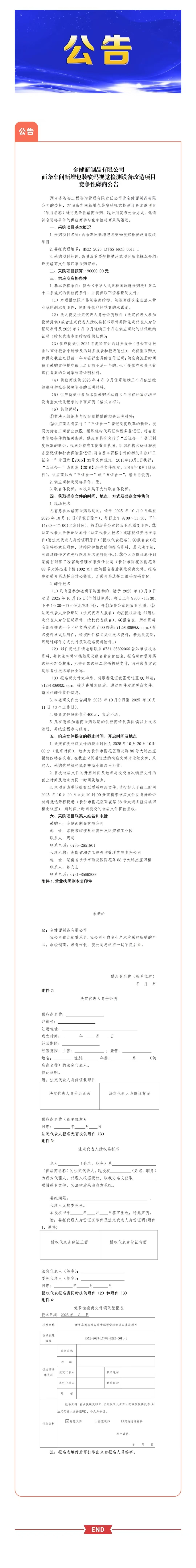 金健面制品有限公司面条车间新增包装喷码视觉检测设备改造项目竞争性磋商公告
