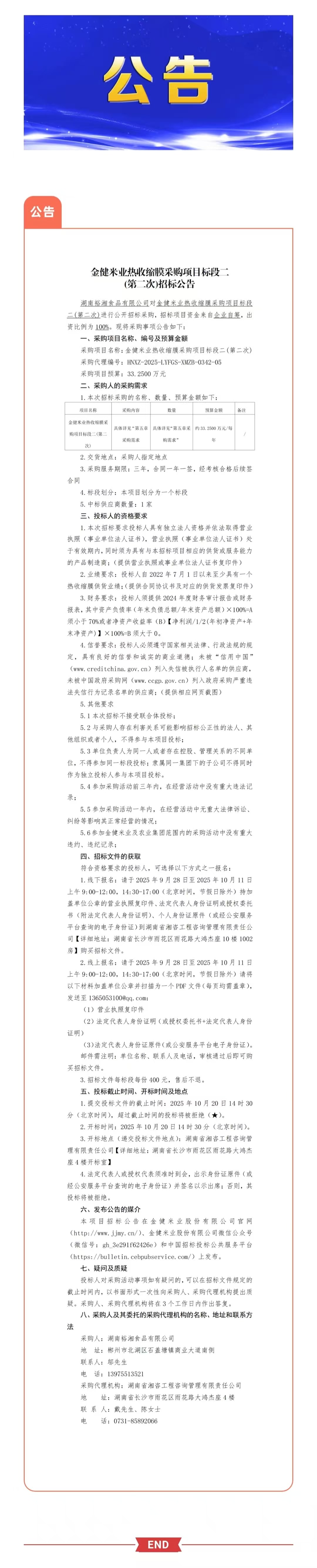 金健米业热收缩膜采购项目标段二(第二次)招标公告