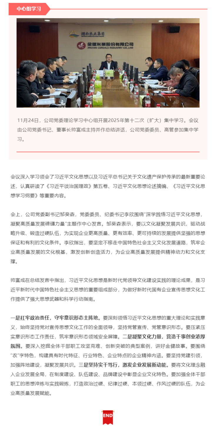 金健米业党委理论学习中心组开展2025年第十二次(扩大)集中学习