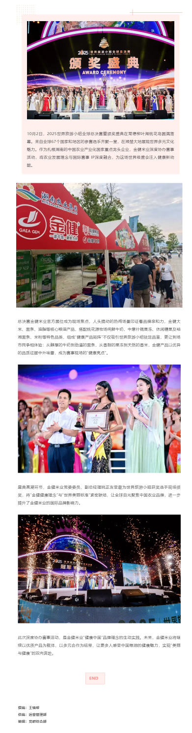 健康与美丽双向奔赴!金健米业深度协办2025世界旅游小姐总决赛
