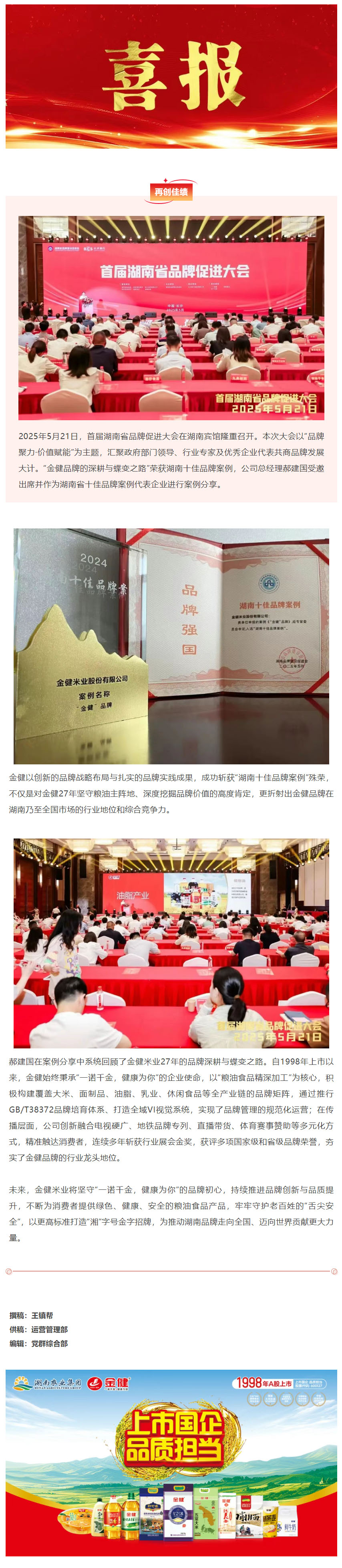 金健品牌荣获湖南十佳品牌案例