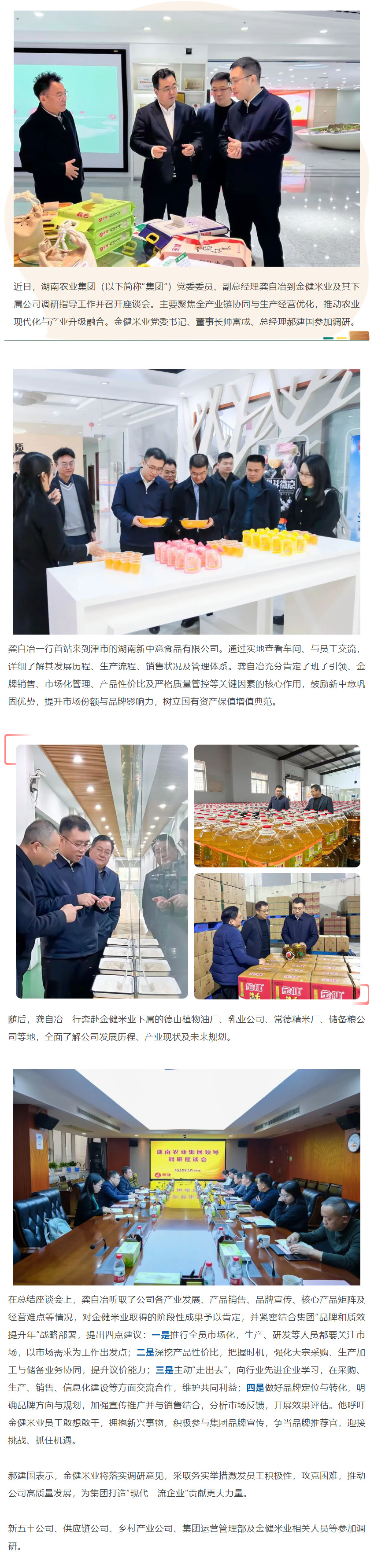 湖南农业集团党委委员、副总经理龚自冶调研金健米业