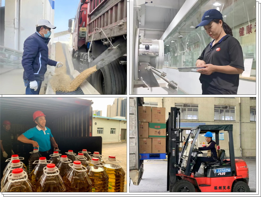 右下:常德植物油厂叉车工龙伟规范操作忙出货。