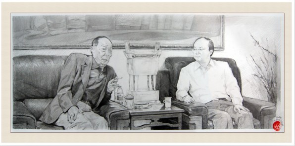 一等奖 药业公司工会选送的绘画作品《董事长与袁隆平》