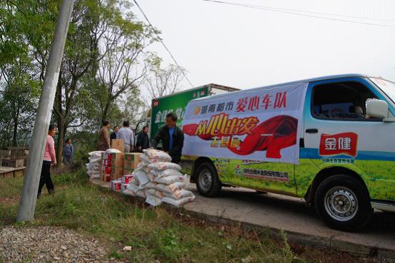 11月1日,在湖南电视台都市频道的号召下,由金健米业等多个爱心企业组成的“爱心车队”在省电视台进行简短的“爱心启程”仪式后,“爱心车队”沐浴着朝霞走上了去沅陵县沅陵镇馒头咀“无水村”之路。