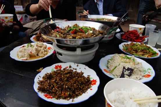 到下午3时,方得进餐。村民好客,特产、山珍悉数摆上,其间虽有镇上领导为示隆重而在餐桌上打上座席表的接待宾客之举,但板栗、核桃以及地道的当地土家菜让饥肠咕噜的我们胃口大开,在也是当地特产甜软可口的“糊子酒”的佐餐下,风卷残云。