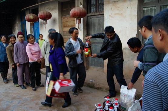 公司除组织捐款以外,还给该村村民送去了放心米、面条、菜籽油、牛奶等产品。村支书一声吆喝,村民咸至,搬得不亦乐乎。