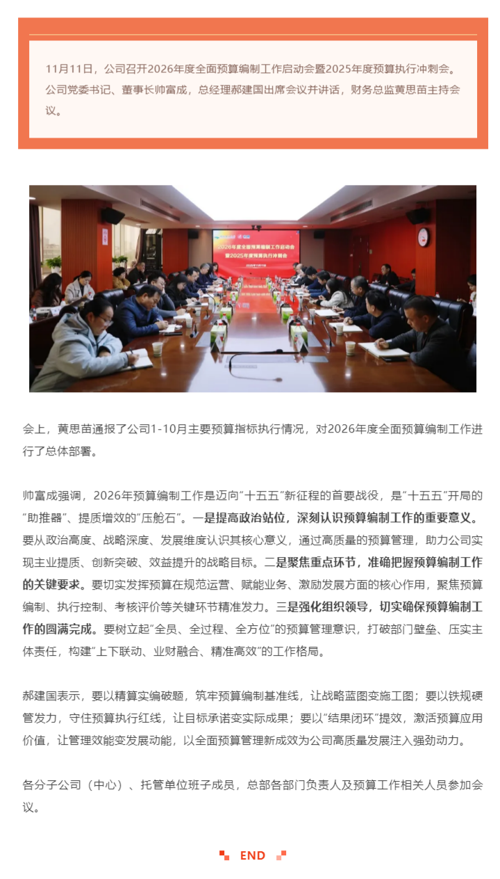 公司召开2026年度全面预算编制工作启动会暨2025年度预算执行冲刺会